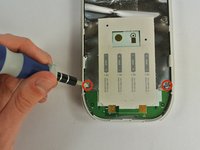 Using the Phillips #00 Screwdriver, unscrew the 15 mm screw holding the backup battery cover, located above the main battery area.