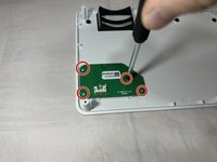 Remove the four 4.8 mm screws from the button circuit board beneath the top cover using a Phillips #1 screwdriver.