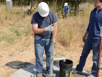 Once the riser main and valves have been removed from the well, place a rag over the top to prevent accidentally dropping anything down the well.