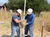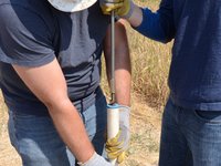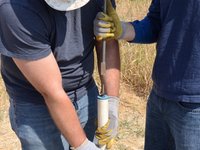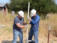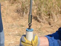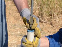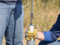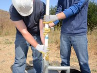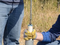 Once the riser main hits the bottom, turn the T-handle while pushing down.