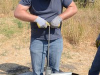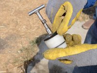 Remove the T-handle, making sure to hold the remaining end of the riser main to prevent dropping it down the well.