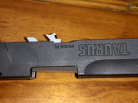 Continue moving the slide forwards until the rear of the slide passes the guides the notches above the disassembly latches(pointed out in the last picture).