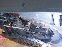 Once the belt has been re-applied and the turntable re-attached, stand the record player back up.