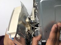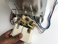 Remove the circuit board housing for the heat controller from the interior body of the toaster by unscrewing two Pan Phillip head screws