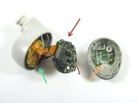 To release the MCU PCB from the headphone, we can pop the retention clip interfacing the MCU to the headphone via the flex ribbon cable