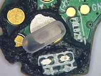 Close up view the Microphone interfaces to the topside [Touch Sensor / Antenna Cap]