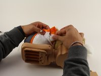 Unplug the two sets of wires connected to the back of the eyes by using moderate to high force.