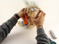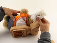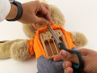 Orient the bear with his back facing upwards and unscrew the single Phillips #2 screw.