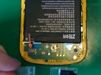 Remove the two H2 screws, on either side of the phone. Do not lose the red seal that are on the screws.