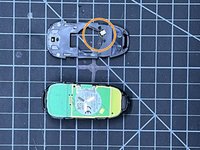 • The coin cell battery holding bracket (circled in orange) can be removed by gently grabbing with tweezers and lifting straight up