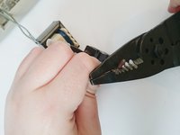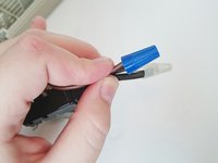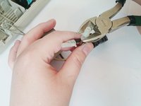 Use a wire cutter to cut off the white cap and expose the wires. Try to cut close to the tip of the white cap - to leave as much wire as possible.