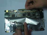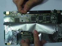 • Lift up on the material covering the motherboard starting from the upper right corner. Peel foil back only about half way down.