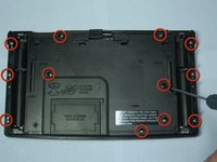 • Using a Philips Screwdriver #00 unscrew the twelve 11.8mm screws shown in the picture and located on the back of the calculator.