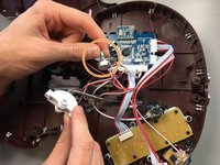 This will unscrew the electrical connection between the whammy bar and the blue circuit board.