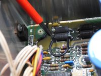 Solder the first bridge on top of the CR19, which is one of the 4 large diodes (the one at the bottom left)