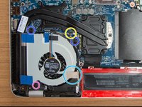Detach the adhesive stripe that secures the webcam's and the display's cable to the fan.