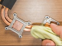 Apply the liquid #2 on the whole metal surfaces of the CPU and GPU and then ─ without waiting ─ wipe them gently with the cloth until they are dry. Repeat this operation another time if you see dirt on the cloth.