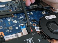 Pull the blue tab of the trackpad ribbon cable to unplug the trackpad.