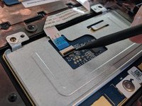 After removing the bottom plate, remove the two screws securing the trackpad to the case.
