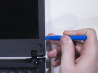 There are plastic tabs every couple of inches that hold the bezel on. Wedge the plastic opening tool in the seam between the screen bezel and the edge of the laptop. This will pop the tabs and allow you to remove the bezel.