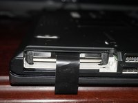 Unlock the latch locking the battery in the laptop.