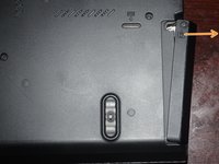 NOTE: To remove the battery, the tab must be held in to avoid having the lock reinitiate inside the laptop.