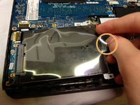 Gently grab the plastic tab. Lift and pull the SSD assembly out of the computer