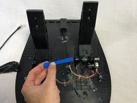 Remove the 10mm long black screws on the back of the base using a PH2 Phillips head screw driver. There are 13 screws total.