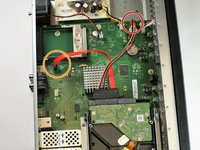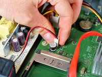 Pinch the connector of the single flat red wire and gently remove from motherboard.