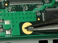 On the rear of the device, remove the right screw with a T10 Torx Screwdriver.