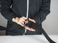 Next, thread end of strap through the top end of plastic loop and pull to desired length.