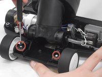 The first two steps of the wheel replacement guide is being used, but the third step is skipped for the brush motor replacement.