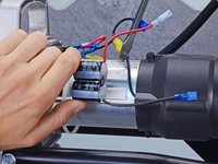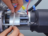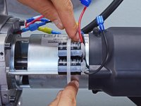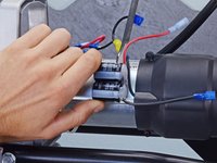 Use diagonal cutters, or scissors, to cut the two cable ties bundling the capacitor's positive and negative wires.