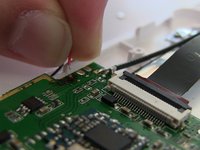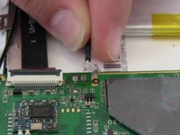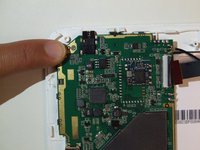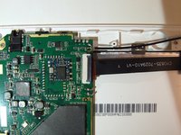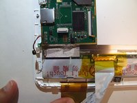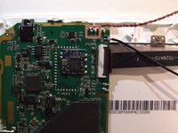 Locate a strip of gold tape, which holds it to the device, on the bottom of the motherboard.