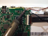 Two wires, one red and one black, which run from the motherboard to the battery, need to be desoldered from the motherboard.