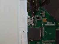 With the device facing down, the USB charging port can be located on the left side of the device directly on the motherboard. The mini HDMI port will be above the charging port and the micro SD port will be below, with the charging port in the middle of the two.