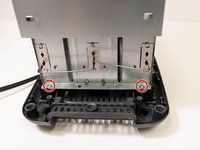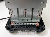 Use a Phillips 2 x 4in. screwdriver to remove the two 0.25 in. Phillips head screws. These screws secure the front of the internal housing of the toaster.