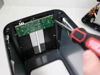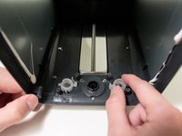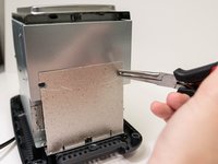 Use a Phillips 2 x 4in. screwdriver to remove the two 0.25 in. Phillips head screws. These screws secure the back of the internal housing of the toaster.