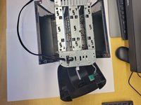The circuit board is welded to the heated filaments. In order to further open up the toaster frame, this step is necessary.