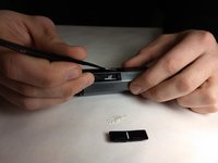 Using the metal spudger, wedge underneath the button and gently pry it out.