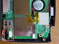 When you now lift out the mainboard, you have access to the battery and loudspeaker.