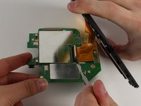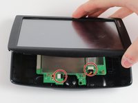 Rotate the device 180 degrees, carefully slide back the screen, and remove the remaining two screws.