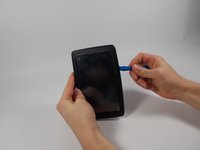 Pry along the edges with the plastic opening tool to separate the back and front panel.