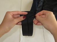Align the 2x5 nylon cloth with the torn off backpack strap.