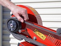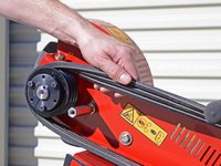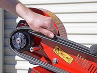 Lift the drive belt up and away from the machine while rolling it towards the cutter head to gradually roll it off of the pulley.