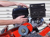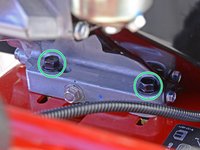Use a 1/2 inch wrench to loosen the two bolts behind the centrifugal clutch enough to allow the motor to slide freely. Do not remove the bolts.