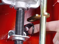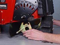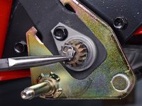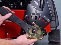 Set the height adjustment lever all the way forward, past the "A" setting, to loosen the axle spring underneath the mower.