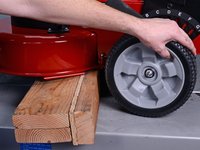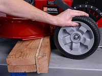 Place the mower on blocks so each wheel is above the work surface and can rotate freely.