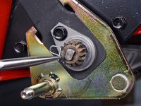 Use a pair of needle nose pliers to remove the gear retaining pin.
