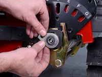 Align the height adjustment lever and driveline bearing bolt with the hole on the axle.